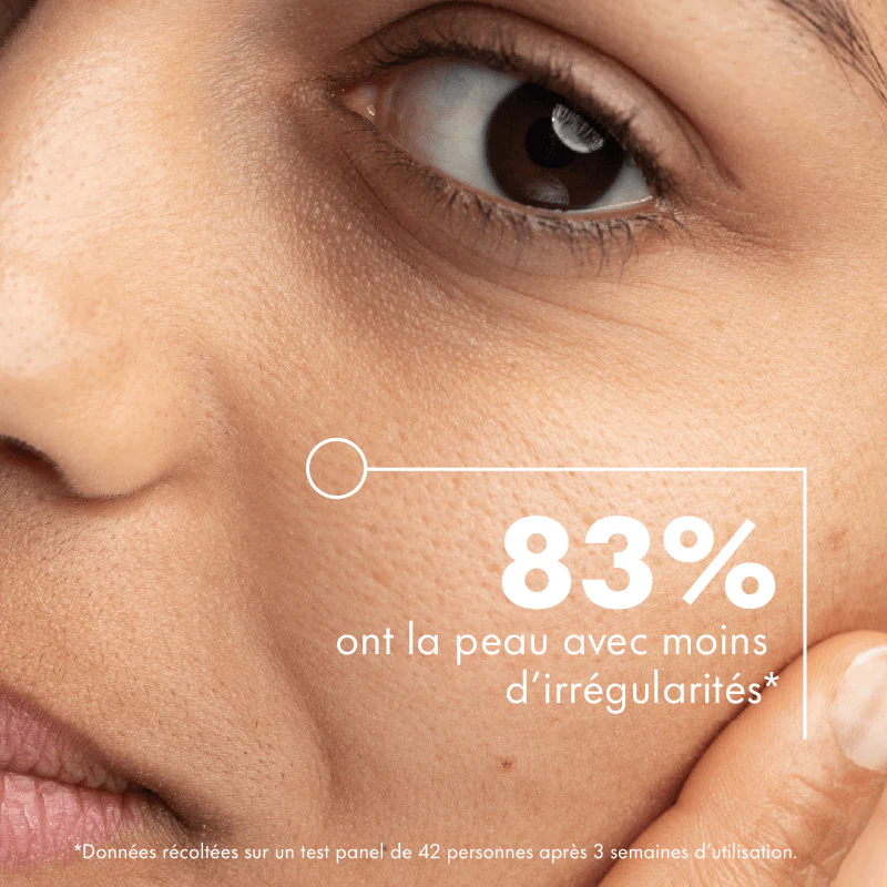 - PURIFIER : la production de sébum est diminuée et la zone T du visage est moins brillante. (BHA et charbon)